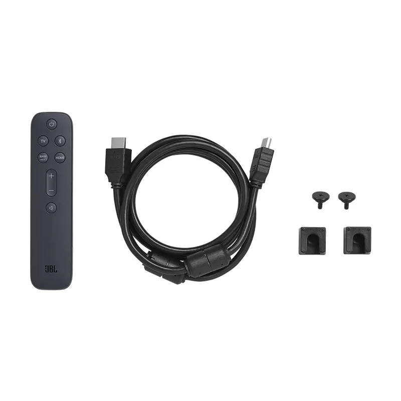 ساند بار JBL BAR 2.1 DEEP BASE MK2 ساب ووفر بیسیم کنترل بیسیم با باتری کابل برق کابل hdmi براکت دیواری دفترچه راهنما